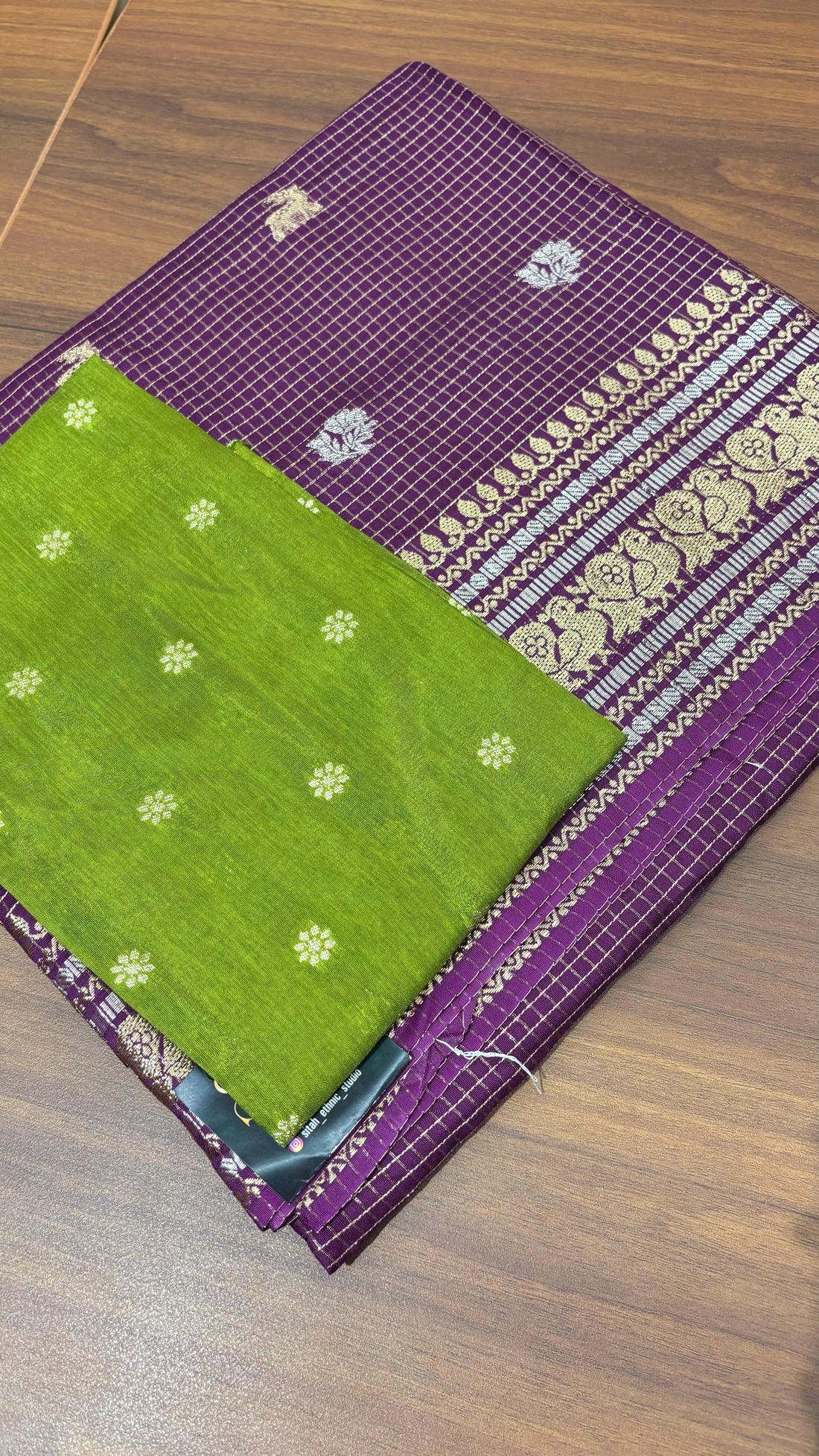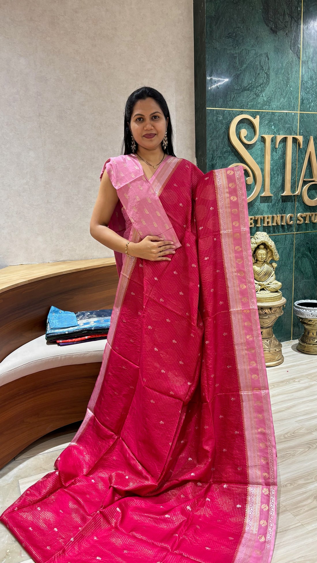 Fancy viscose dola saree in Pink and orange with kanchi style borders