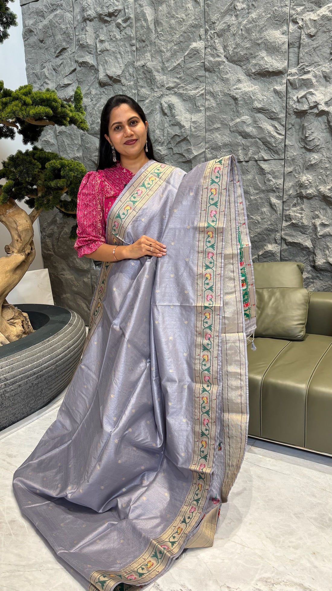 Tussar paithani pink