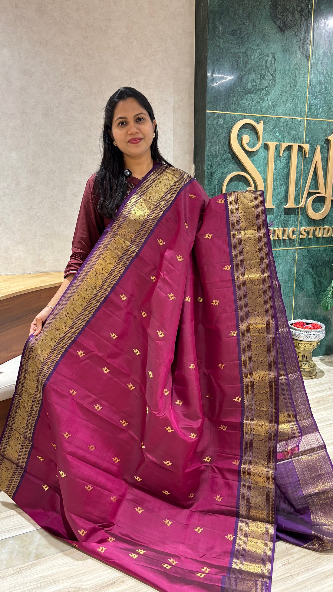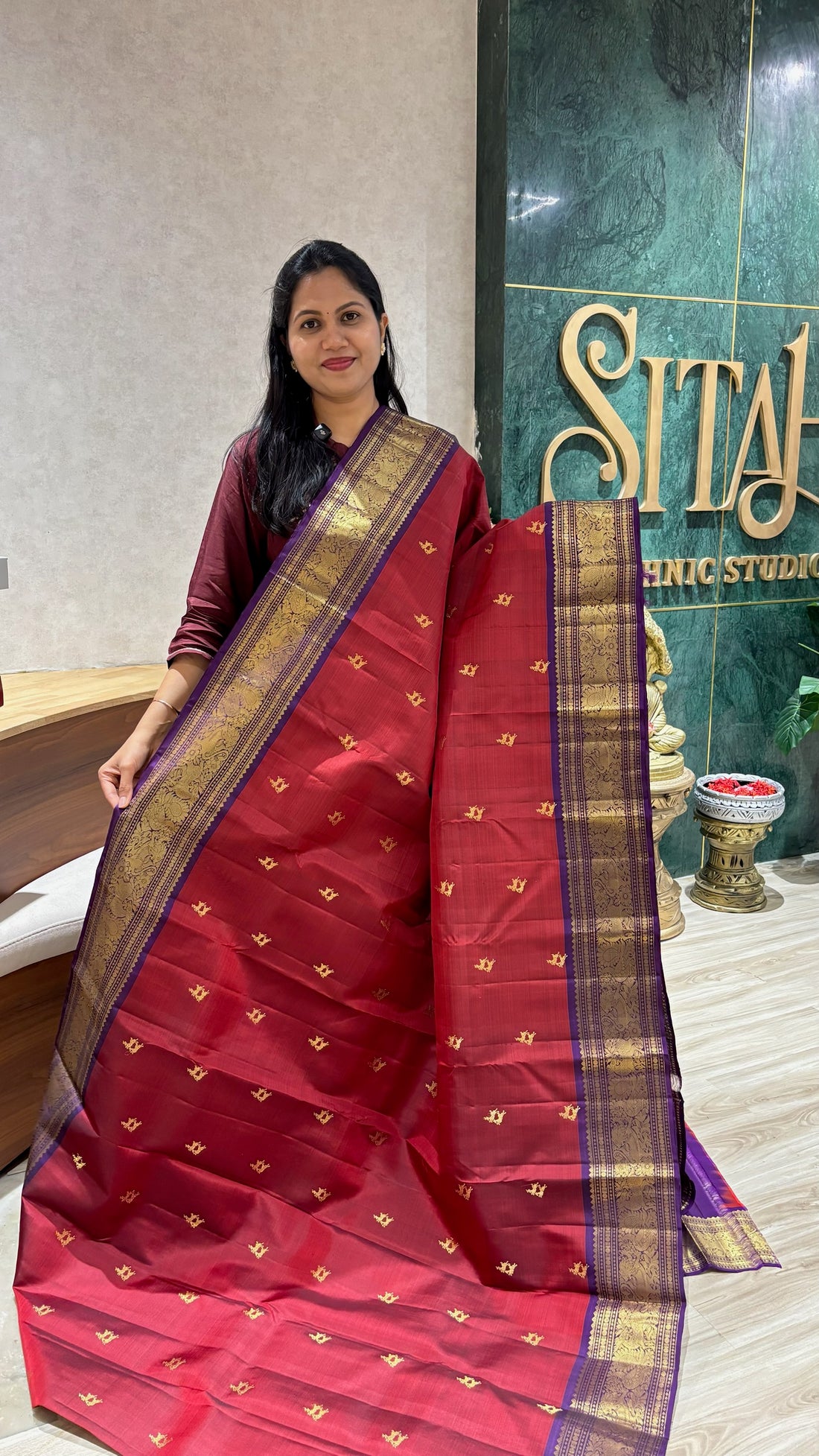 Handloom Kanchi marron-purple
