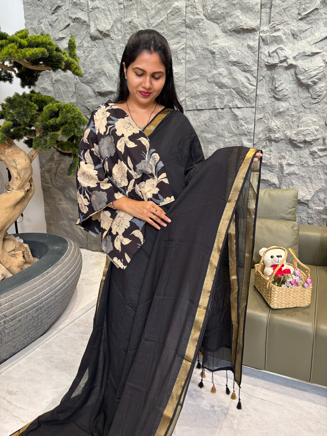 Soft and flowy modal silk sarees in black with stripes pattern.