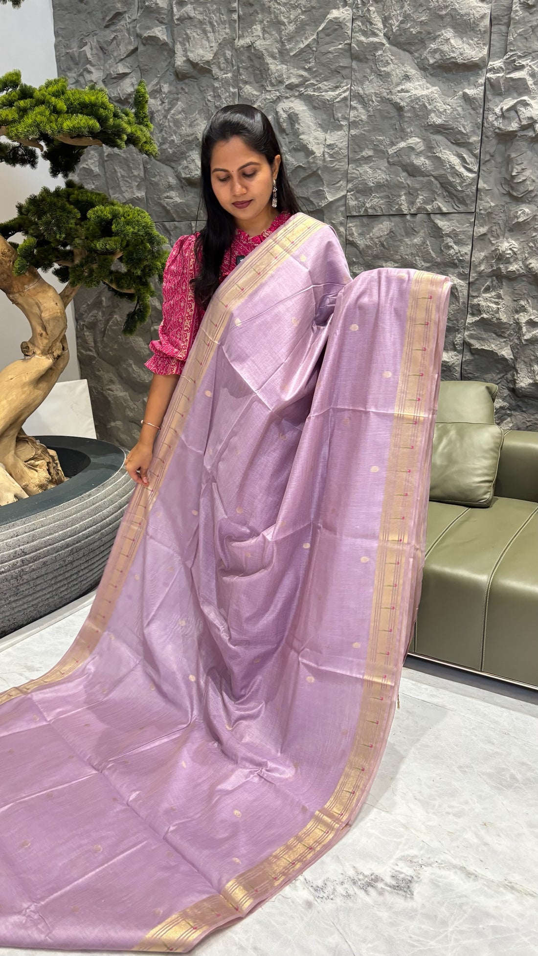 Munga cotton paithani lavendar