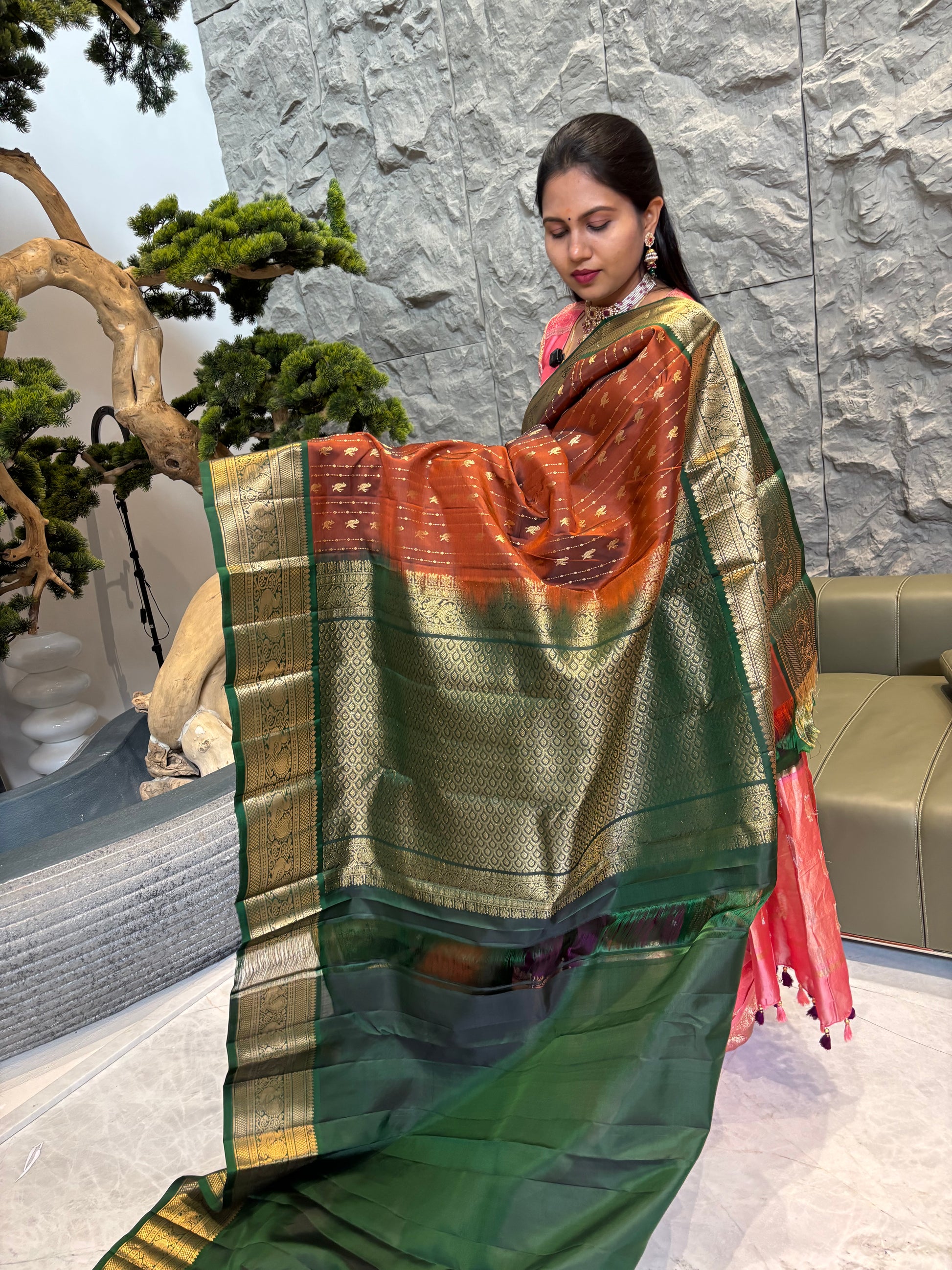 Pure handloom lightweight kanchi pattu sarees. Comes with border color plain blouse with border weave.