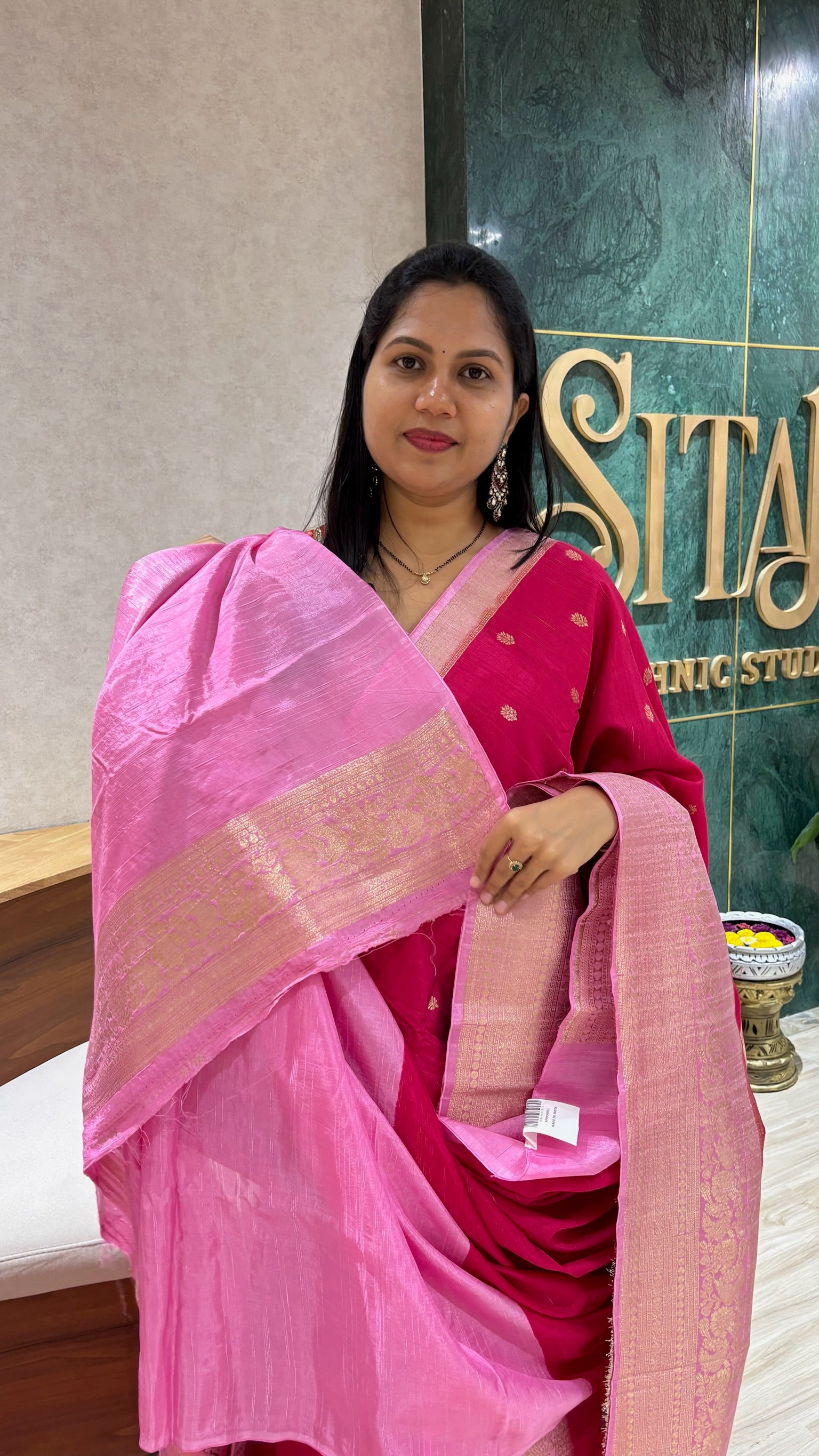 Raw silk saree pink