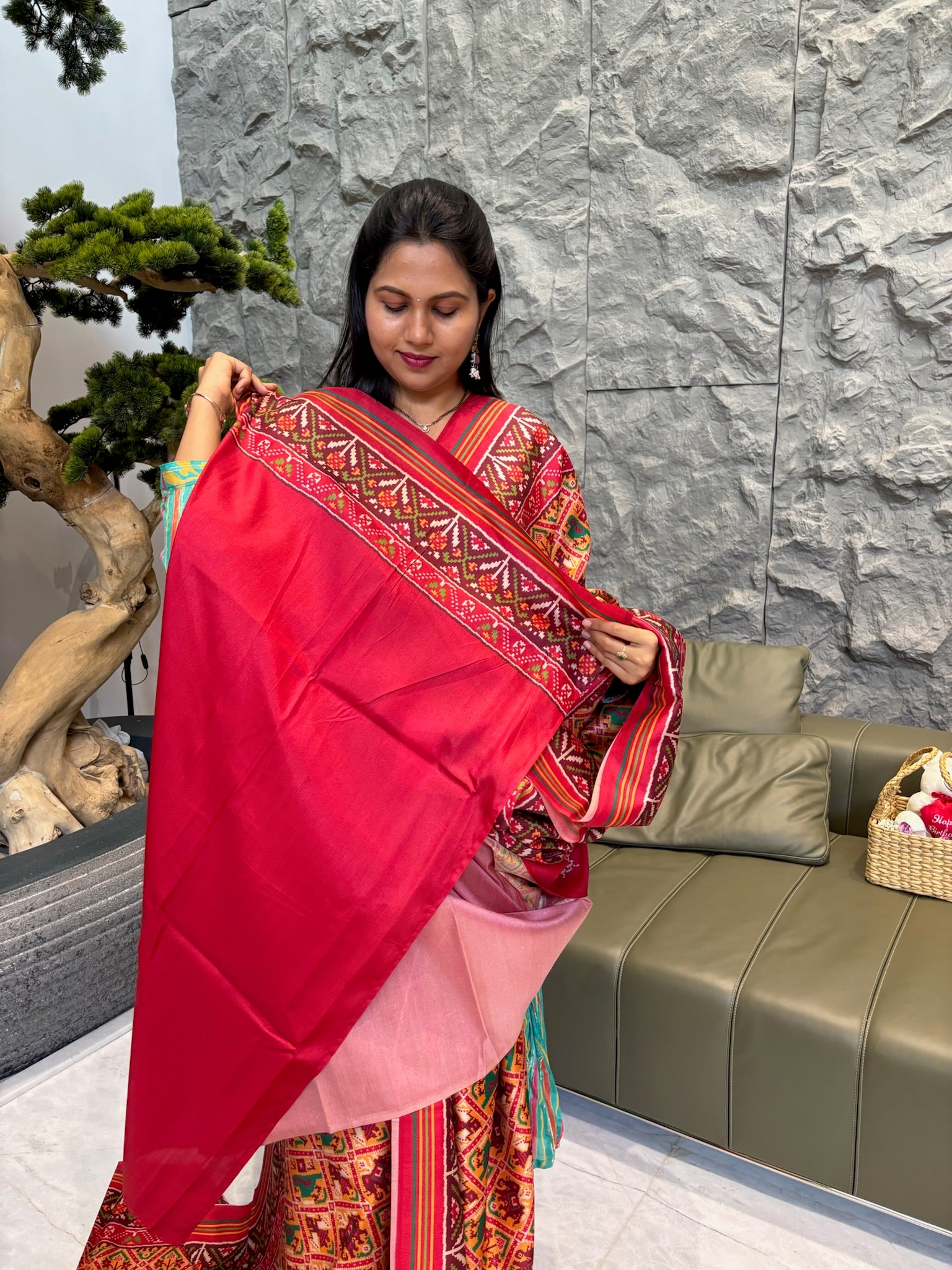 Spun patola yellow red checks pattern