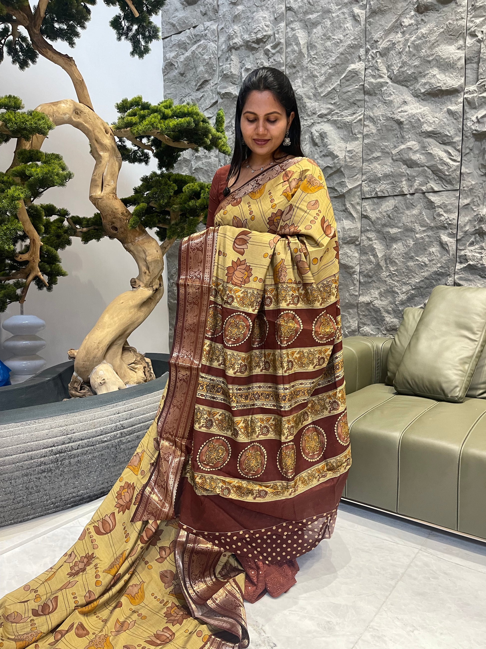 Mangalagiri silk sarees in beautiful concepts and catchy color combos. Grab these beauties
